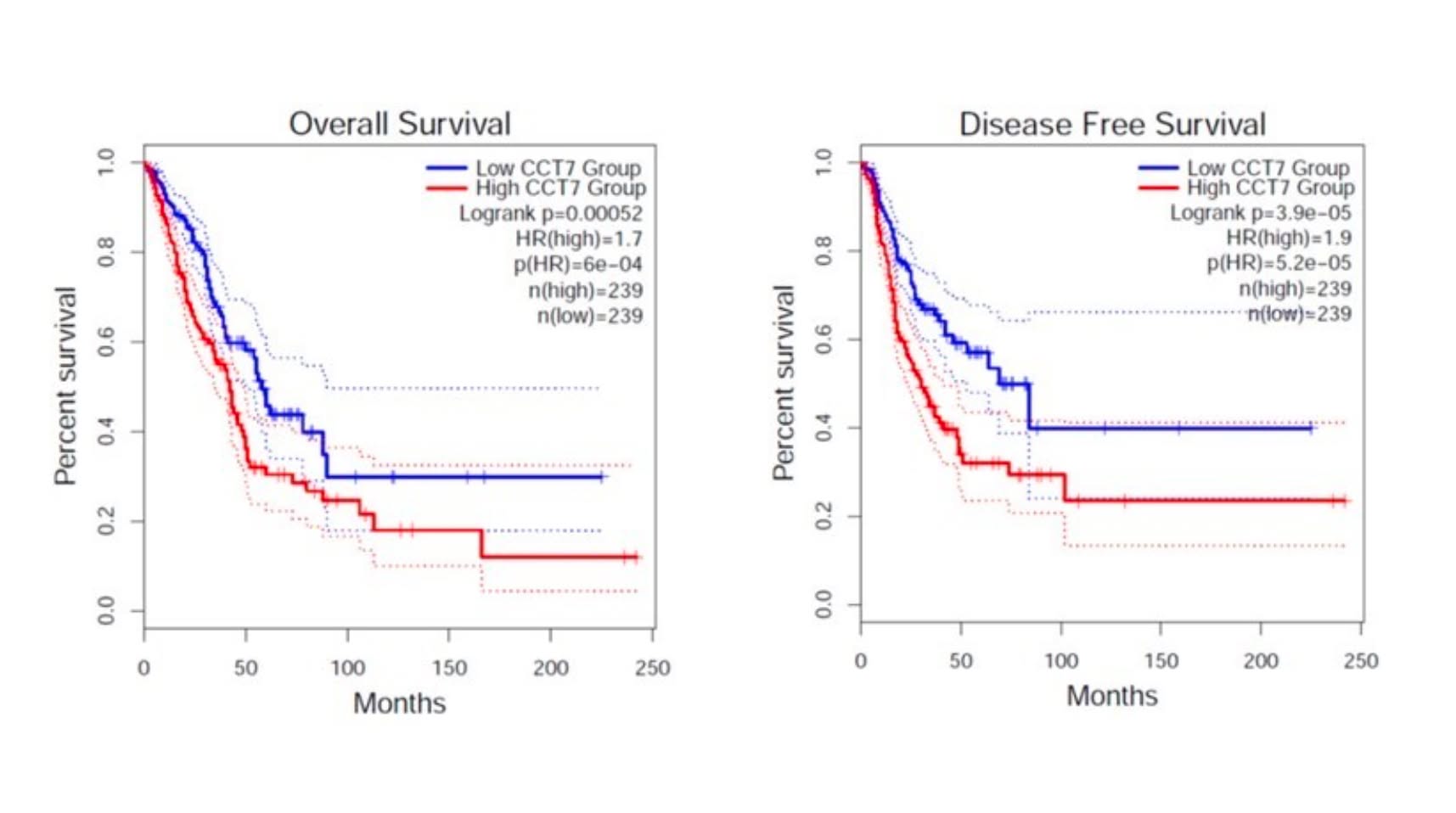 癌症的致命性主要在於其轉移與復發。我們研究發現,癌症高復發率或與CCT7表現密切相關。當細胞中CCT7表現量高時,細胞增殖迅速但抗藥性較低;而CCT7表現量低時,細胞雖生長減緩,卻具高度抗藥性。我們推測,化療僅能抑制高CCT7表現的細胞,導致低表現的細胞持續潛伏並可能轉移。一旦低CCT7表現細胞重新轉為高表現,癌症即可能復發。本次報告旨在驗證此推論。